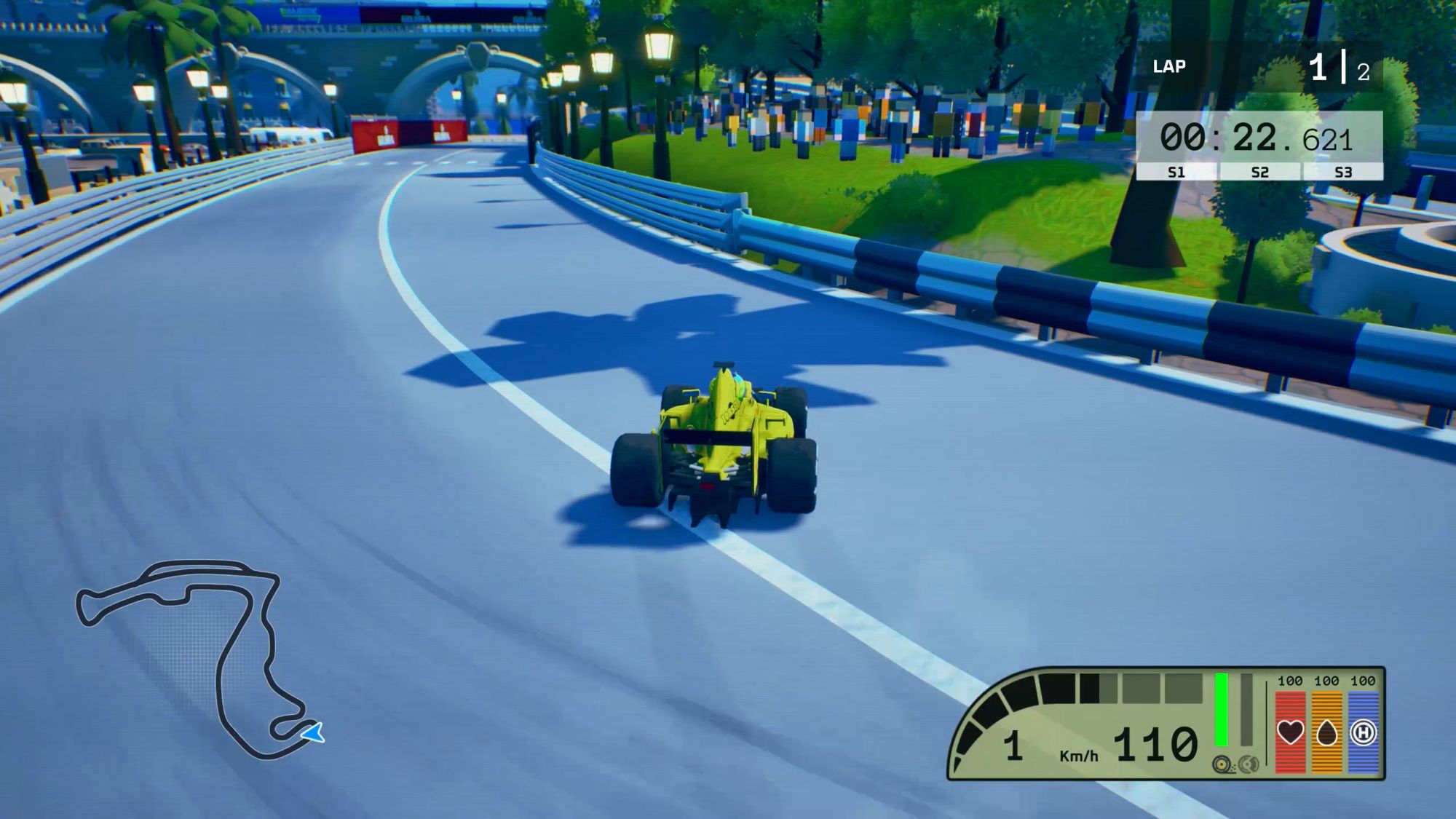 Spanning seven decades, from the 1960s to the 2020s, Formula Legends offers a career mode packed with unlockable cars, tracks, and drivers. Circuits evolve with the passage of time, from straw bales lining the roads in the 60s to the safety barriers of the modern era. Cars are reimagined as miniature machines with whimsical flourishes, yet they retain the design details that make each era iconic. Even features like the cheeky Wind Reduction System, or WRS, add a playful twist.