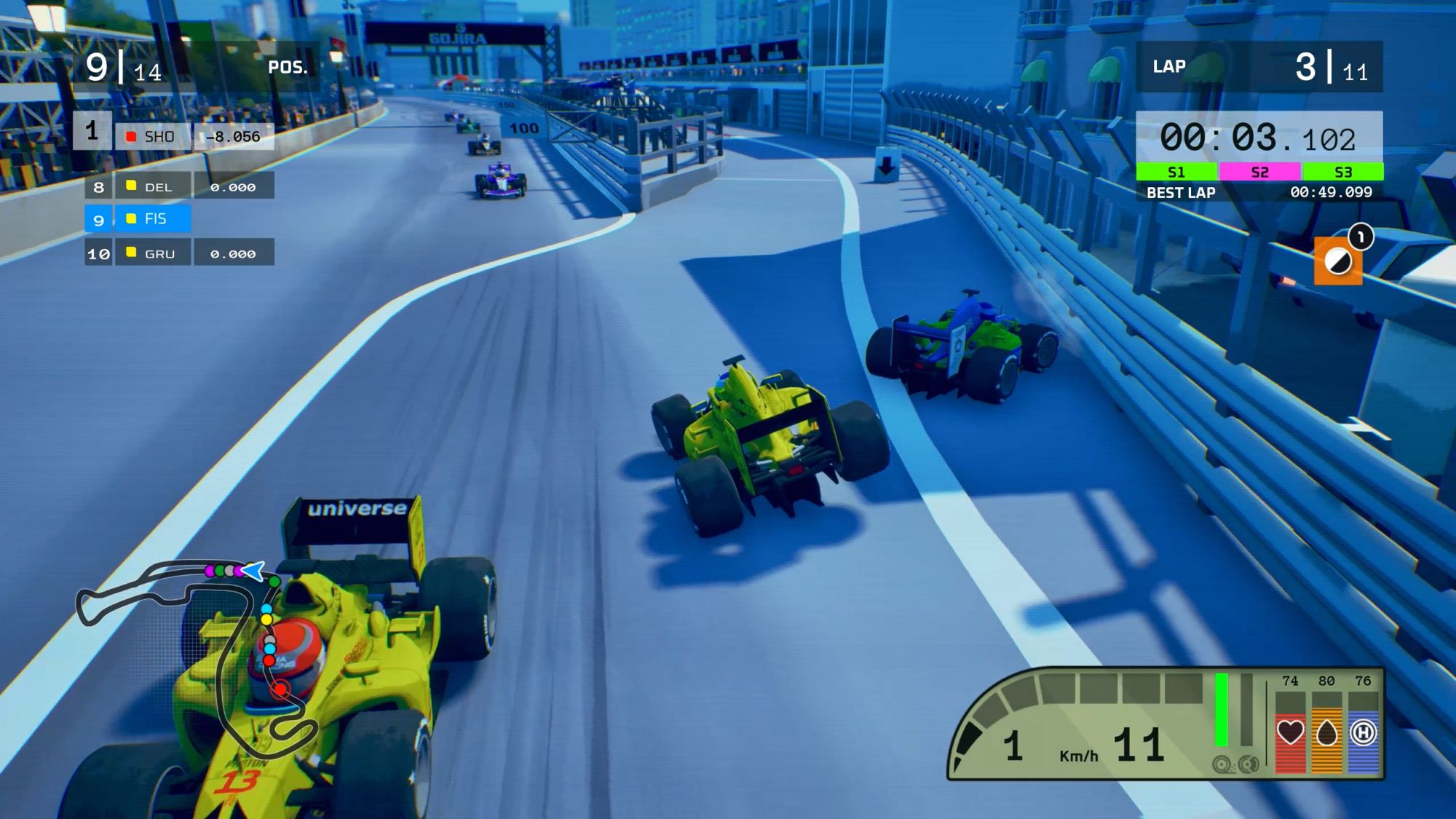 3DClouds describes Formula Legends as a blend of simulation and arcade racing. Tire wear, fuel management, weather effects, and pit stop mini-games add touches of realism. At the same time, assists like traction control, ABS, and the amusing WRS system keep the game approachable for newcomers.
